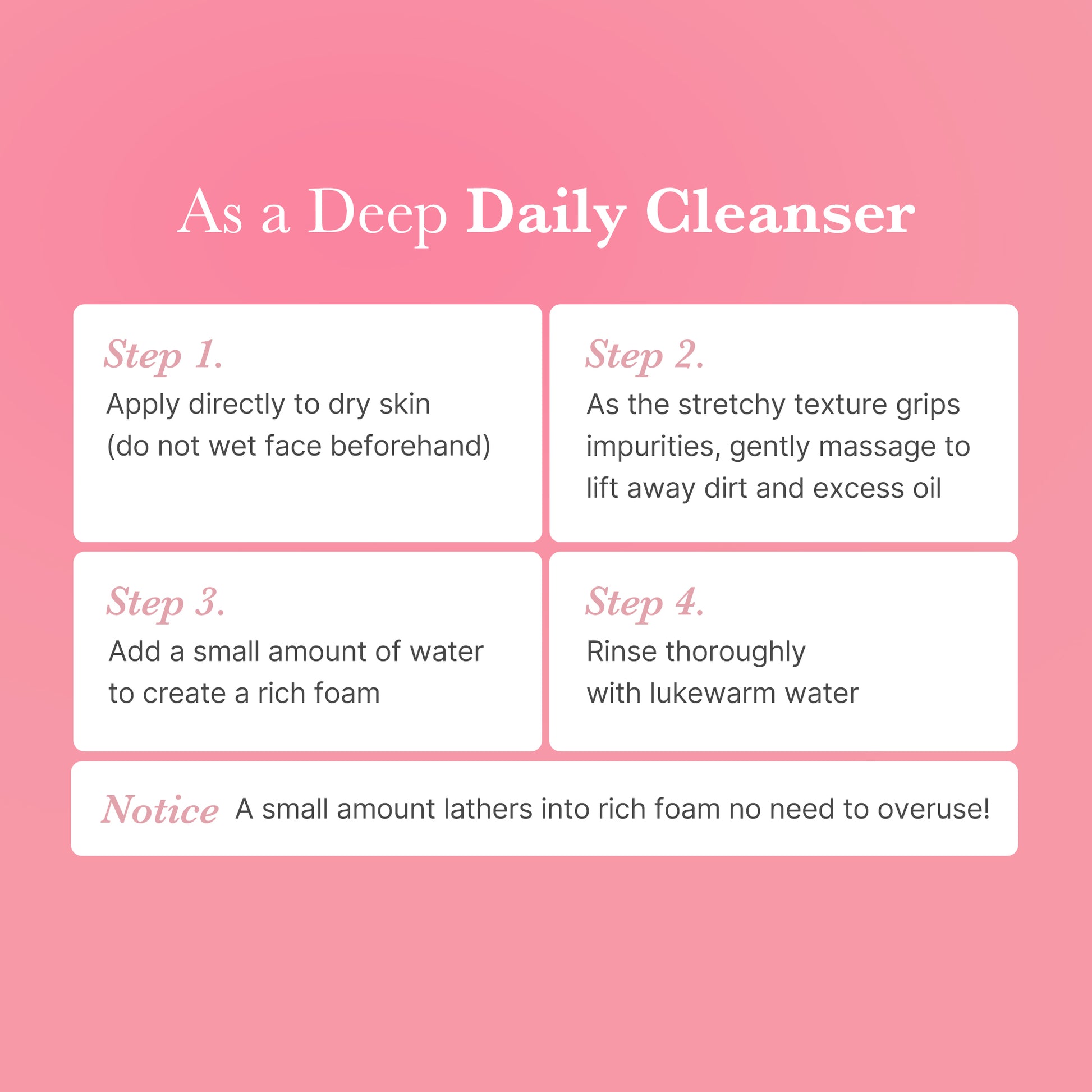 Purified Water, Glycerin, Myristic Acid, Stearic Acid, Potassium Hydroxide, Lauric Acid, Niacinamide (20,000 ppm), Glyceryl Stearate SE, Glycol Distearate, Palmitic Acid, Cocamidopropyl Betaine, Potassium Cocoyl Glycinate, Sodium Polyacrylate, Sorbitan Olivate, Sorbitol, Allantoin, Potassium Cocoate, Polyquaternium-10, Sodium Chloride, Polyquaternium-7, Butylene Glycol, Caprylyl Glycol, Acrylates/C10-30 Alkyl Acrylate Crosspolymer, Tetrasodium EDTA, Chamomile Flower Oil, Brassica Oleracea Extract, Damask Rose Flower Water, Peach Extract, Thuja Orientalis Extract, Cyanocobalamin, Common Jasmine Flower Water, Bitter Orange Flower Extract, Rosemary Leaf Oil, Melon Extract, Hedera Helix (Ivy) Leaf/Stem Extract, 1,2-Hexanediol, Panthenol, Sodium DNA (50 ppm), Sodium Benzoate, Coptis Root Extract, Ethylhexylglycerin, Gluconolactone, Glutathione, Capryloyl Salicylic Acid, Salicylic Acid, Caprylic/Capric Triglyceride, Baobab Seed Oil, Hydrogenated Lecithin, Pentylene Glycol, Ceramide NP, Madecassoside, Molokhia Leaf Extract, Parsley Extract, Okra Fruit Extract, Decyl Glucoside, Dimethylsilanol Hyaluronate, Hydrolyzed Hyaluronic Acid, Hydrolyzed Sodium Hyaluronate, Sodium Hyaluronate, Potassium Hyaluronate, Hyaluronic Acid, Ceramide AS, Ceramide NS, Hydroxypropyltrimonium Hyaluronate, Sodium Hyaluronate Crosspolymer, Sodium Hyaluronate Dimethylsilanol, Ceramide AP, Ceramide EOP, Sodium Acetylated Hyaluronate.